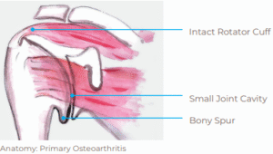 In primary osteoarthritis with cartilage destruction, we opt for the so-called anatomical shoulder arthroplasty, which mimics the original joint as closely as possible and therefore relies on an intact rotator cuff.